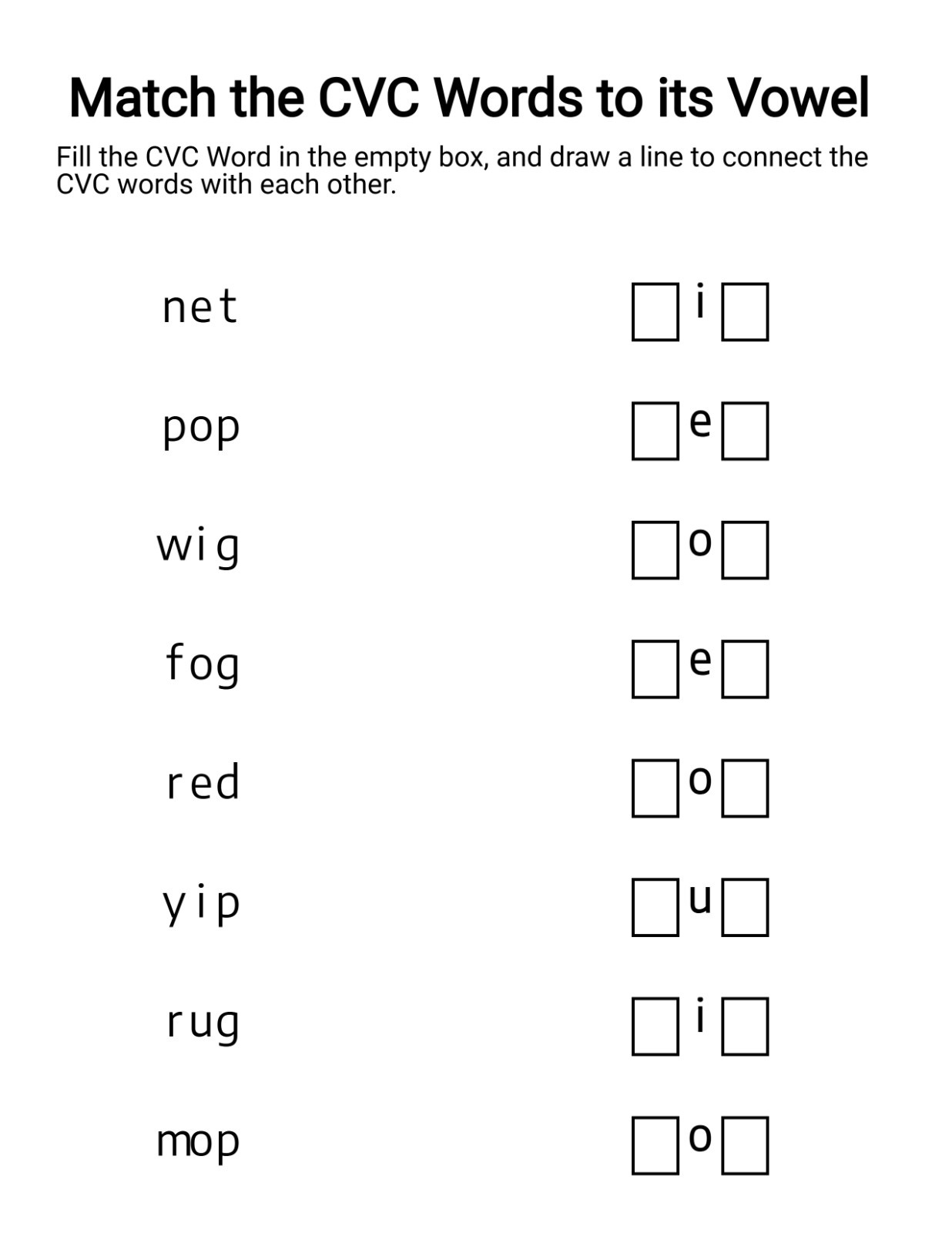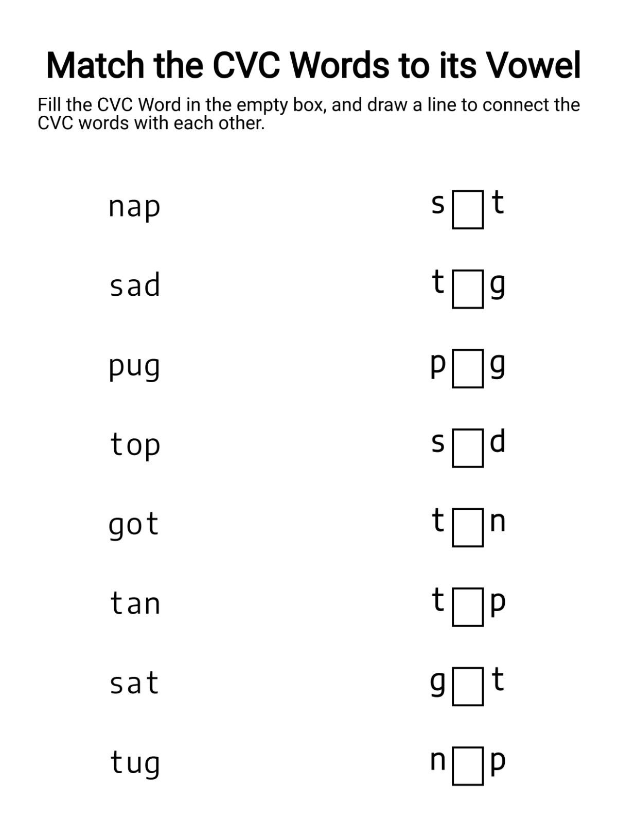 This matching-style worksheet allows children to connect complete CVC words with their vowel sounds, improving recall through association. It’s especially effective for visual learners who benefit from pattern recognition. We have gone ahead and created a lot of variations to give you choices that you didn’t even know you needed so bad in your CVC book.