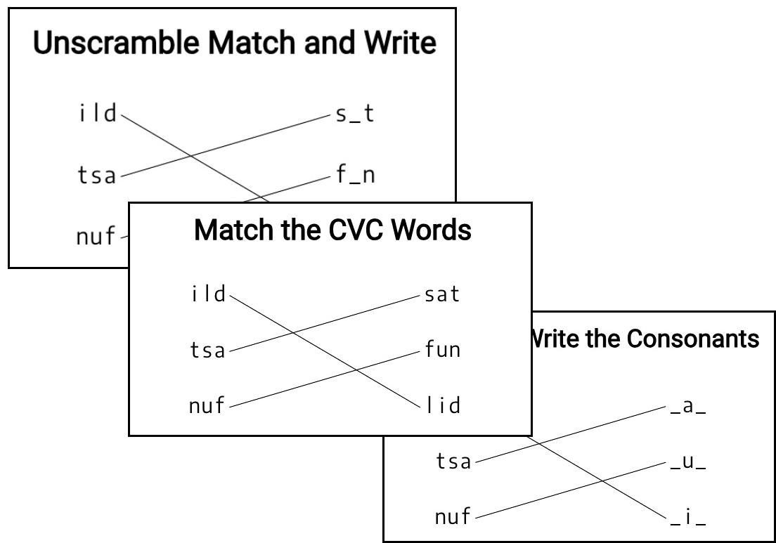 It’s about engaging multiple learning pathways—recognition, choice, construction, reinforcement, and light creativity—so children truly understand how CVC words work.