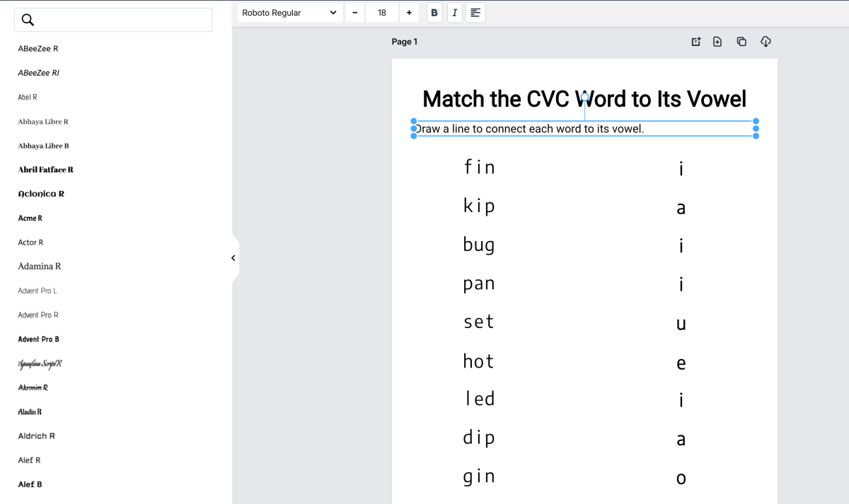 We spent a lot of time and engineering effort developing the tech that goes into this app so that you get a seamless experience when creating CVC words activity books for your business.