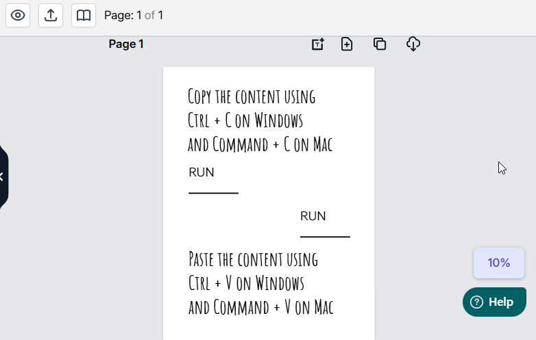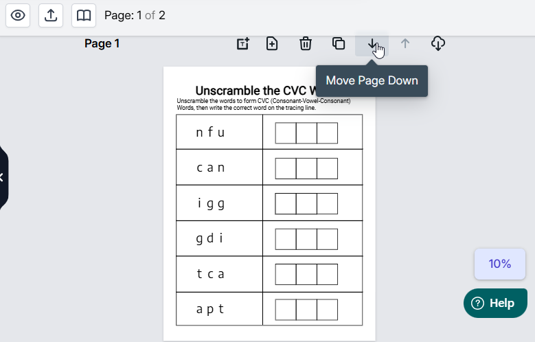 Want to move some pages around in your manuscript? It’s super simple with the shuffle pages option. Click on the up arrow to move the page up or the down arrow to move the page down.