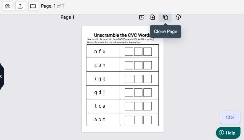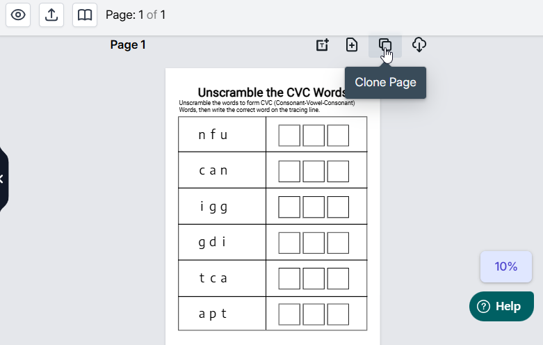 Want to clone a page to copy the layout for easy editing of the CVC worksheet? That’s super easy with the single page clone option provided on your dashboard.