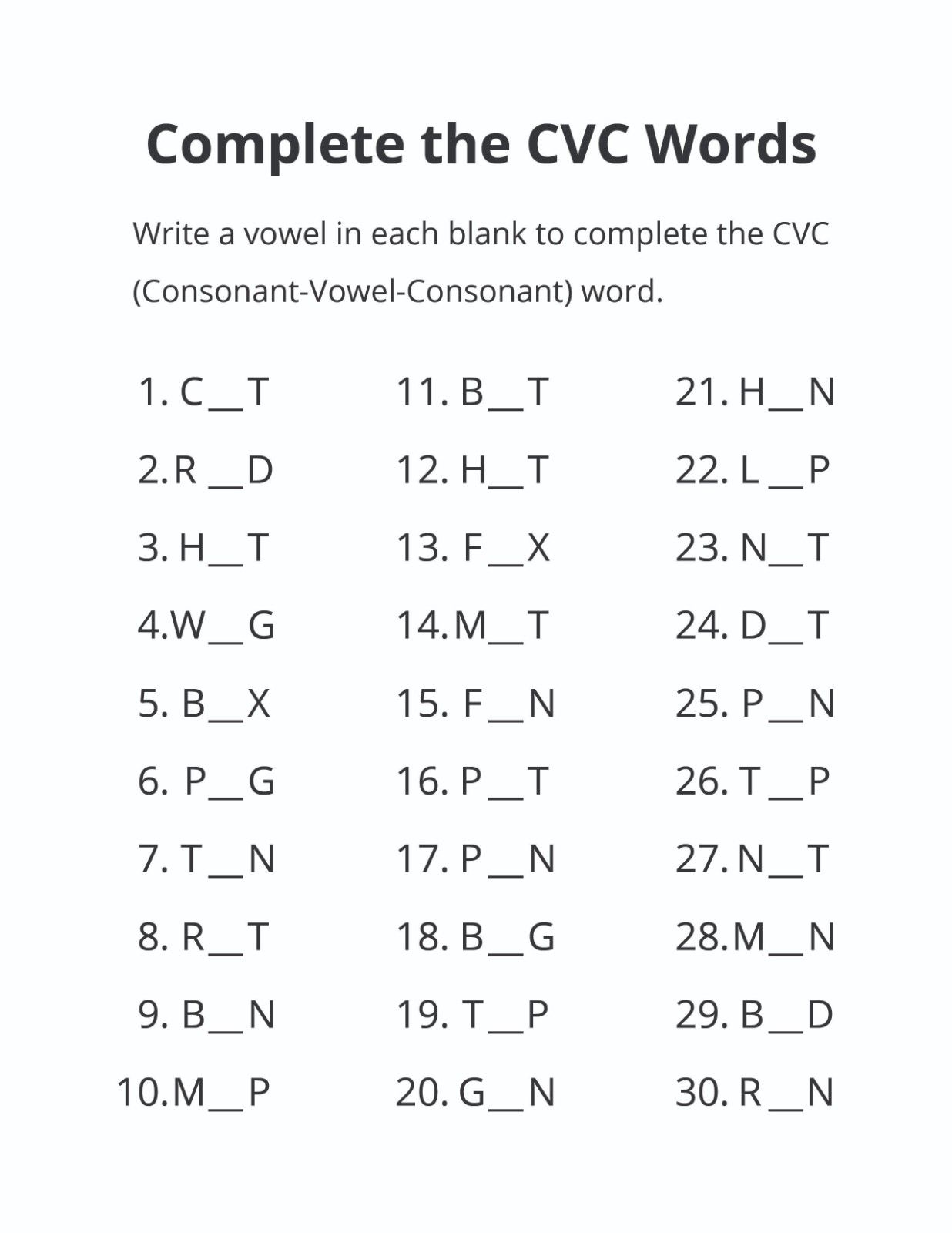 That’s exactly how the worksheet styles inside CVC Worksheets Generator have been designed.